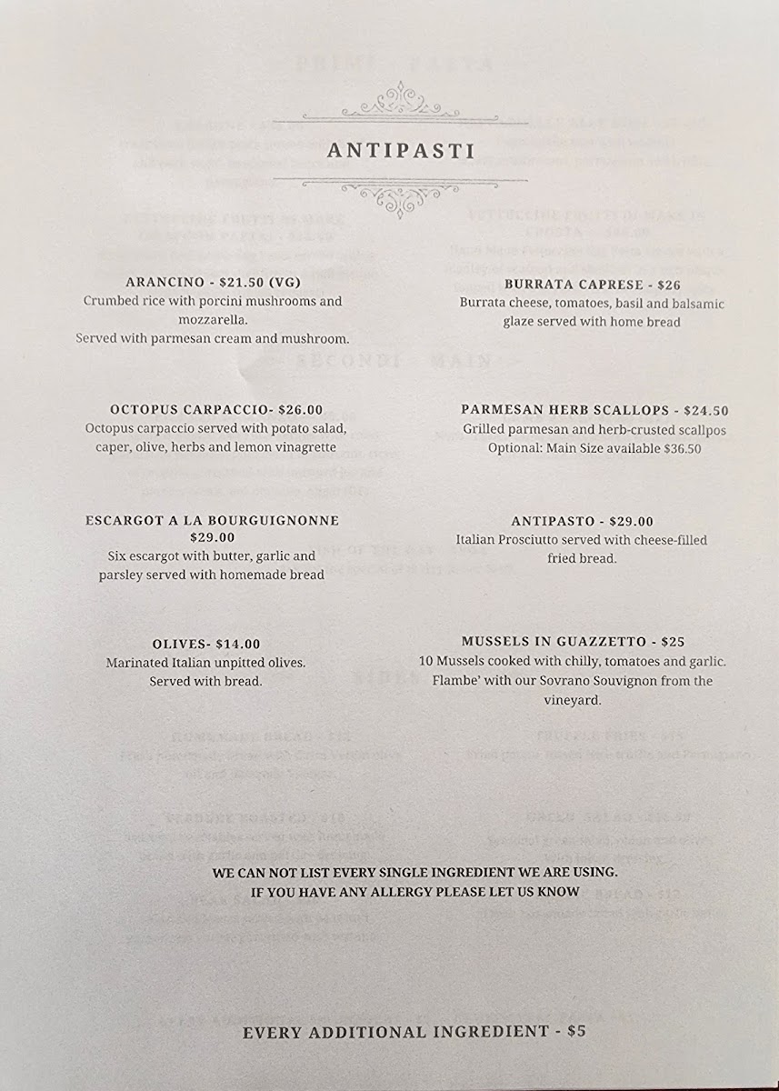 Introducing the Menu at Sovrano Restaurant and Winery Kerikeri